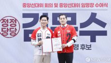 [서울=뉴스핌] 최지환 기자 = 김문수 국민의힘 대선 후보와 권성동 원내대표가 12일 오전 서울 영등포구 여의도 국민의힘 중앙- 2025.05.12 12:08