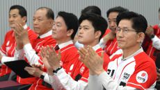 나경원 선대위원장과 기념촬영하는 김문수 후보