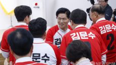 양항자 선대위원장과 기념촬영하는 김문수 후보