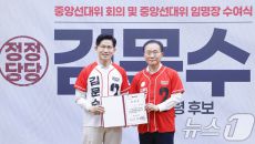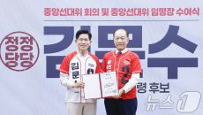 (서울=뉴스1) 이광호 기자 = 김문수 국민의힘 대통령 후보가 12일 서울 여의도 중앙당사에서 열린 중앙선거대책위원회 임명장- 2025.05.12 11:59