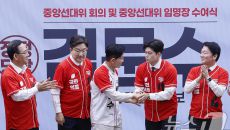 (서울=뉴스1) 이광호 기자 = 김문수 국민의힘 대통령 후보가 12일 서울 여의도 중앙당사에서 열린 중앙선거대책위원회 임명장- 2025.05.12 11:57