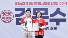 아시아투데이 이병화 기자 = 김문수 국민의힘 대선후보가 12일 서울 여의도 국민의힘 중앙당사에서 열린 중앙선거대책위원회 임명장- 2025.05.12 11:50