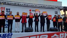 [춘천·서울=뉴시스] 이승재 우지은 기자 = 국민의힘은 30일 강원 춘천에서 열린 장외 집회에서 검찰의 대장동 사건 항소 포기- 2025.11.30 15:31