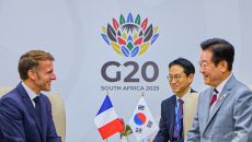 (서울=뉴스1) 이재명 기자 = 이재명 대통령과 에마뉘엘 마크롱 프랑스 대통령이 22일(현지시간) 남아프리카공화국 요하네스버그- 2025.11.25 20:52