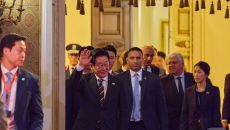 화동들에게 꽃다발 전달 받은 이재명 대통령