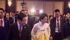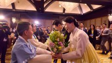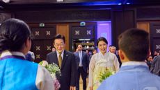꽃다발 전달 받는 이재명 대통령·김혜경 여사
