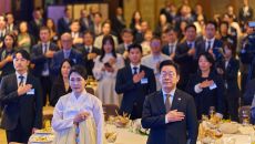 동포·지상사 간담회 인사하는 이재명 대통령·김혜경 여사
