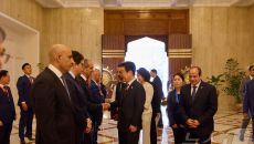 이집트 환영인사들과 인사 나누는 이재명 대통령