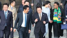 민주당 지도부, 이재명 대통령 G20 순방길 배웅