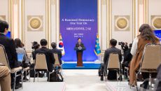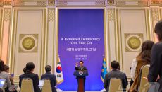 '새롭게 선 민주주의, 그 1년' 외신 기자회견 질문 받는 이재명 대통령