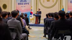 (서울=뉴스1) 이재명 기자 = 이재명 대통령이 2일 청와대 영빈관에서 열린 2026년 신년 인사회에서 신년 인사말을 하고 있- 2026.01.02 14:45
