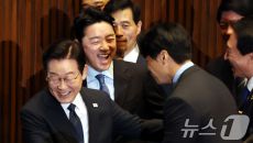 본회의장 인사 나누는 이재명 대통령