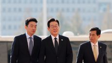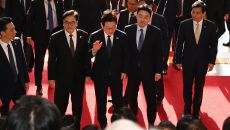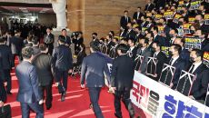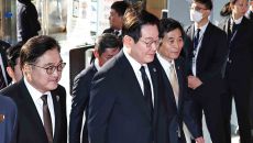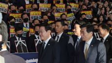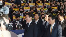 국민의힘 의원들 침묵시위 앞 지나는 이재명 대통령