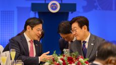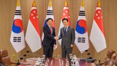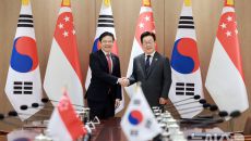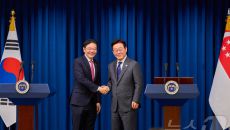 손 잡은 이재명 대통령·로렌스 웡 싱가포르 총리