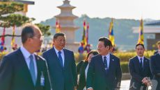 (서울=뉴스1) 이재명 기자 = 이재명 대통령과 시진핑 중국 국가주석이 1일 경북 경주시 경주박물관에서 한중 정상회담 기념촬영- 2025.11.02 05:33