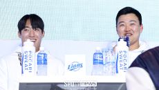 원태인-오재일 ‘목걸이는 구단 홍보팀 작품’ [MK포토]