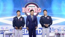 프로야구 두산 이승엽 감독(가운데)과 허경민, 양의지가 30일 그랜드하얏트서울 그랜드볼룸에서 열린 '2023 신한은행 쏠 프로- 2023-03-30 14:56