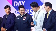 [포토S] 오재일-박진만 감독-원태인, '왕 은목걸이 하고 등장'