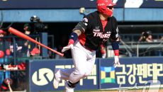 20일 잠실구장에서 열린 두산 베어스와 KIA 타이거즈의 경기. 7회초 1사 1,2루 KIA 김선빈이 적시타를 날린 뒤 숨을- 2025-04-20 16:45