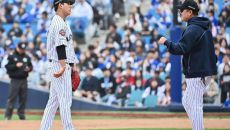 20일 대전 한화생명볼파크에서 열린 NC-한화전. 6회까지 무실점 호투한 폰세가 양상문 코치의 격려를 받고 있다. 대전=정재근- 2025-04-20 15:57