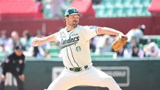 잭 로그 '양의지 리드 좋았어'[포토]