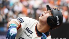 20일 대전 한화생명볼파크에서 열린 NC-한화전. 2회말 무사 노시환이 솔로포를 친 후 관중석으로 기념 인형을 던지고 있다.- 2025-04-20 14:34