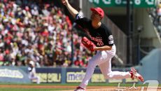 20일 인천SSG랜더스필드에서 열린 SSG와 LG의 경기, LG 김주온이 1회말 1사 만루 SSG 박성한에 밀어내기 볼넷을 내- 2025-04-20 14:21
