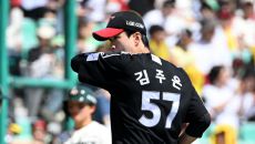 [사진]1회 1사 만루 상황에서 강판되는 LG 선발 김주온