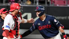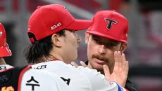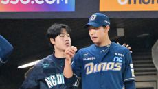 [사진]목지훈,'데뷔전 치른 김태훈 격려'