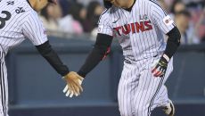 양석환 '이승엽 감독의 축하를 받는 홈런타자'[포토]