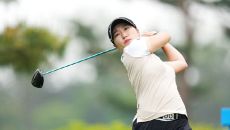 [골프in포토]서연정,미소로 바라보는 첫 티샷