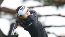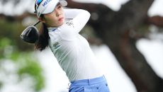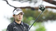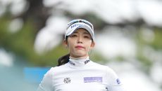 [골프in포토]배소현,홀을 보며 스트레칭한다