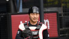 15일 잠실구장에서 열린 LG 트윈스와 키움 히어로즈의 경기. LG 포수 이주헌이 수비 훈련을 하고 있다. 잠실=박재만 기자- 2025-05-15 16:11