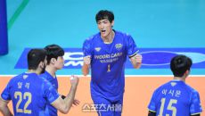 [mhn포토] 우리카드, 1세트에 이어 2세트도 가져 가요