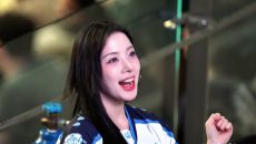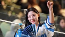 [mhn포토] 하지원, 신나는 음악에 맞춰 우리카드 응원