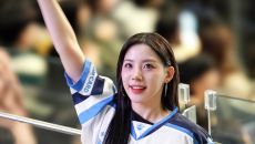 [mhn포토] 하지원, 열띤 응원전 머리 위로 올려