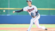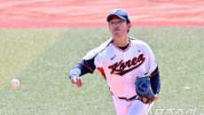 24일 일본 오키나와 가데나 구장에서 열린 야구 대표팀과 KIA 타이거즈의 평가전. 고영표가 역투하고 있다. 오키나와(일본)=- 1시간전
