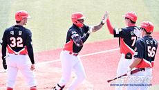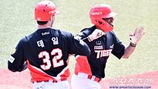 24일 일본 오키나와 가데나 구장에서 열린 야구 대표팀과 KIA 타이거즈의 평가전. 카스트로가 투런포를 날린 뒤 환호하고 있다- 1시간전