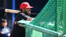해럴드 카스트로 '선수들 배팅 지켜보며'[포토]
