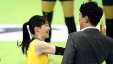 [mhn포토] 김다인, 강성형 감독 기다려 파워 하이파이브