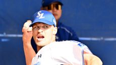 '폰세 대체자 화이트' 무사 만루 넘긴 뒤 투런포 허용...첫 실전은 '절반의 성공' [오키나와 현장]