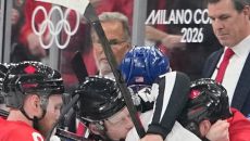 관세 전쟁보다 뜨거운 주먹다짐이 빙판 위에서 벌어졌다. 미국과 캐나다 남자 대표팀 선수들이 22일 이탈리아 밀라노 산타줄리아- 3시간전