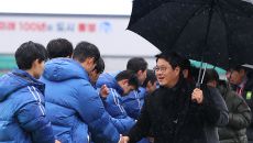 [포토S] 박한동 회장, '궂은 날씨에도 선수들을 격려하며'
