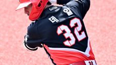 24일 일본 오키나와 가데나 구장에서 열린 야구 대표팀과 KIA 타이거즈의 평가전. 데일이 몸을 풀고 있다. 오키나와(일본)=- 14시간전