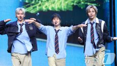 (서울=뉴스1) 권현진 기자 = 라이즈(RIIZE) 은석(왼쪽부터)과 소희, 쇼타로가 19일 오전 서울 용산구 블루스퀘어에서- 2025-05-19 12:05