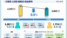 1월 근로자 1인당 임금총액이 0.6% 감소한 것으로 집계됐다. 단시간·저임금 근로자 증가에 따른 하향평준화다. 물가를 반영한- 2023-03-30 12:00