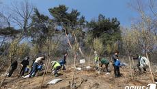 (서울=뉴스1) 송원영 기자 = 30일 서울 성북구 삼청각에서 제78회 식목일을 앞두고 열린 나무심기 행사에서 참석자들이 공기- 2023-03-30 11:28