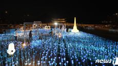 (서울=뉴스1) 김진환 기자 = 30일 오후 서울 종로구 광화문광장에서 열린 '광화에서 빛; 나이다'를 찾은 시민들이 불 밝힌- 2023-03-30 20:17