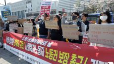 (서울=뉴스1) 박정호 기자 = 공공운수노조 관계자들이 사회복지사의 날인 30일 오전 서울 용산구 전쟁기념관 앞에서 가진 '정- 2023-03-30 11:00