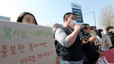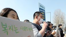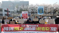 충분한 복지예산 마련 촉구하는 노동자들